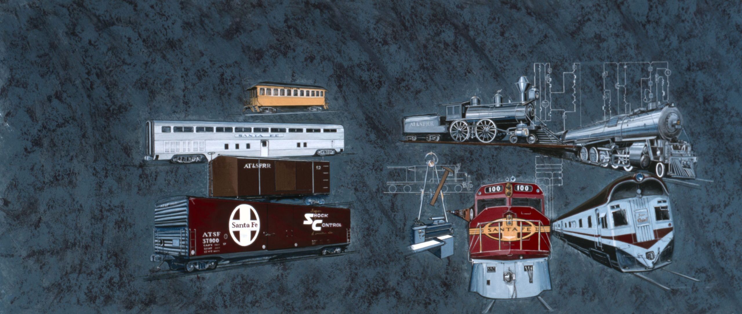 Santa Fe, Topeka Motive Power Building, KS, 9-1968. Locomotive Simulator Training Displays drawn by Industrial Artist Fred Steig.